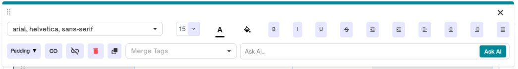 To edit text in a section, simply click on the text to display the text editing options. You can:
